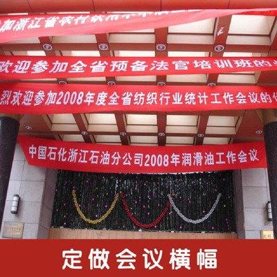一、产品核心展示 - 产品名称:会议专用横幅/竖幅- 核心视觉:正红底色搭配醒目白字,字体···